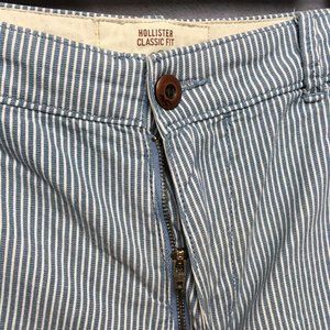Hollister Mens Shorts sz 33 Blue White Striped Flat Front Pockets Stretch Fabric