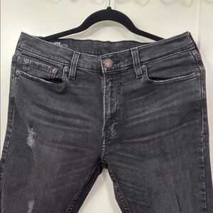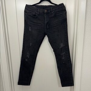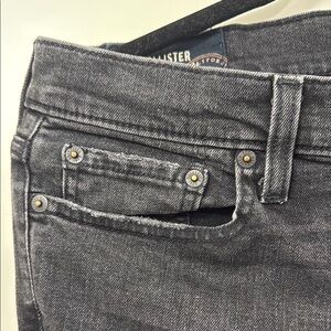 Stylish straight jeans by Hollister. Classic black color. Distressed detailing for a modern look. Perfect for casual wear.