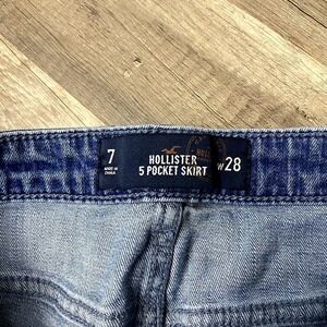 Hollister Mini Skirt Denim Distress Light Wash Y2K Cut Off Size 7/28