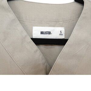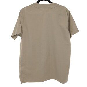Hollister Minimalist Prep SS Button Up Tan Baseball Jersey Shirt Men's Size S