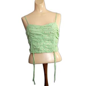 Hollister Mint Green Floral Cinched Ruched Cropped Cami Smocked Back M Coquette