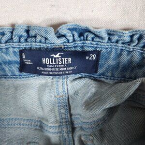 Hollister Mom Shorts W29 9 Ultra High Rise Paperbag Waist Button Fly Blue Denim