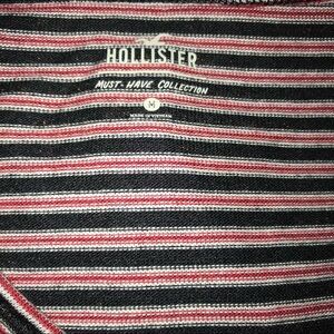 Hollister Must Have Collection Red Striped V-Neck Holiday Long Sleeved T-Shirt