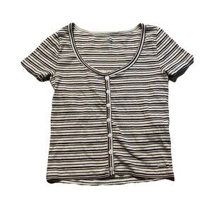 Hollister Must-Have Collection Striped Ribbed Button Tee Women’s Small