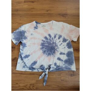 Hollister Must-Have Collection Tie-Front Tie Dye T-Shirt Top - Size M Blue Pink