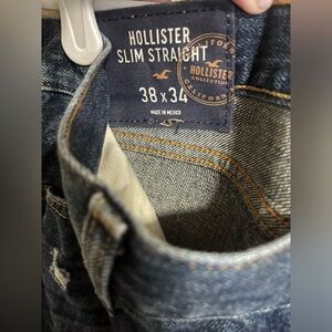 Hollister NWT Men’s Dark Beach Wash Distressed Denim Slim Straight Jeans 38 x 34
