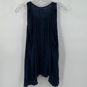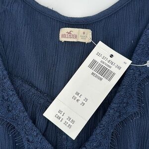 Hollister Navy Blue Tank Top with Lace Detail Size Medium NWT