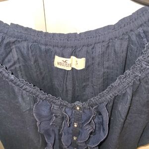 Hollister Navy Ruffle Front Blouse