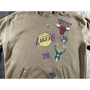 Hollister Nba Pullover Hoodie Small Team Logos Basketball Graphic Brown Unisex