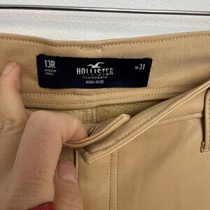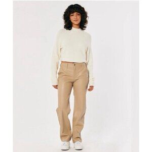 Hollister Nude Beige Faux Leather Relaxed High Rise Straight Leg Pants Sz 31