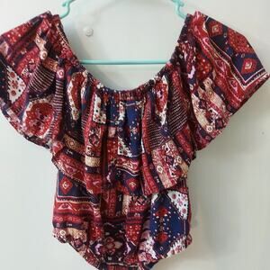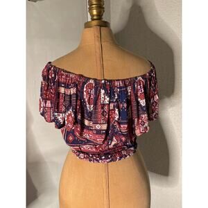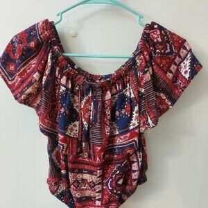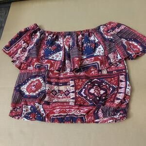 Hollister Off Shoulder Crop Peasant Boho Top XS Cherry Girl Americana Festival