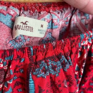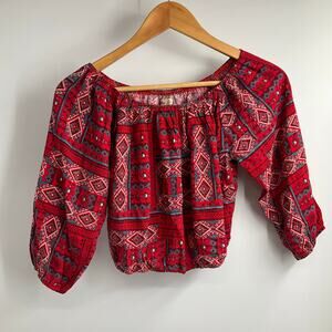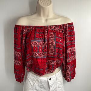 Hollister Off Shoulder Red Tribal Western Native American Print Top Medium