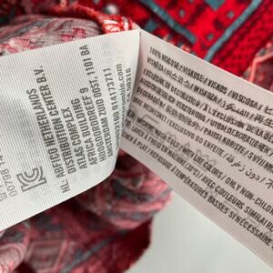 The Hollister Off Shoulder Tribal Western Native American Print Top in size Medium is a stylish and versatile blouse for women. Featuring a geometric pattern with a red color, this top showcases a trendy off-the-shoulder neckline and cropped style. Made from comfortable viscose material, it combines elements of Western, Hipster, and Aztec themes, making it perfect for a wide range of casual or dressed-up outfits. Perfect for those who love a mix of retro, tribal, and bohemian aesthetics, this top is a must-have for any fashion-forward wardrobe.
