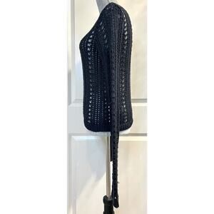 Hollister Open Knit Metallic Pullover Popover Sweater Crew Neck Black Sz S Party