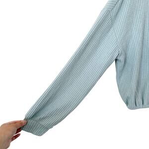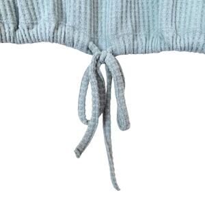 This Hollister Open-Back Tie-Front Boyfriend Long Sleeve Waffle Knit Sweater is a must-have for your wardrobe! The mint blue color is perfect for any occasion.