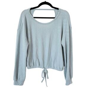 Hollister Open-Back Tie-Front Boyfriend Long Sleeve Waffle Knit Sweater - Small