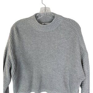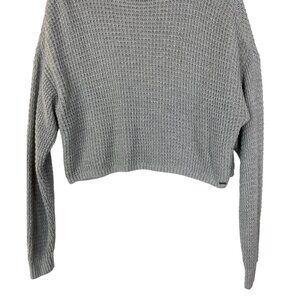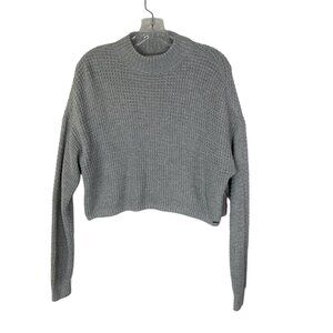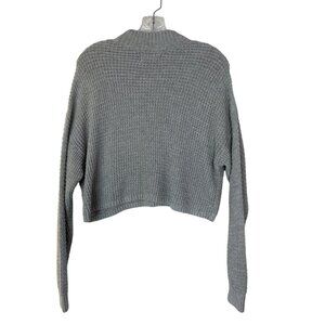 Hollister Oversized Cropped Sweater Womens Small Gray Waffle Knit Mock Neck