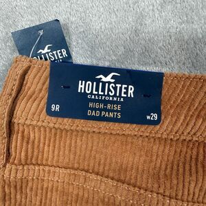 The Hollister Women's 9R Brown Corduroy High Rise Dad Pants are stylish and versatile for various occasions. These pants feature a flattering high rise fit with a 29-inch inseam and a 31-inch waist size, made of 99% cotton and 1% elastane for comfort and stretch. The brown color and corduroy fabric add a touch of winter, geek, and 90s-inspired style to your wardrobe. Perfect for travel, parties, casual outings, or workwear, these pants are a must-have addition to any woman's closet.