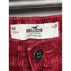 Hollister Pants Womens Sz 00 W23 Corduroy Burgundy Wine Pleated Ultra High Rise