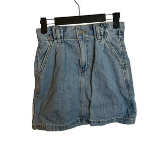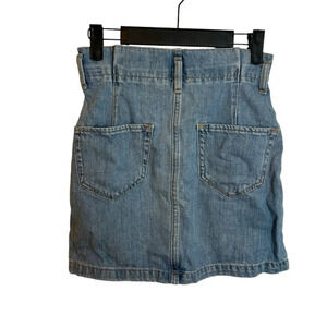 Pre owned excellent condition. Worn once or twice. Super cute light wash paper bag denim mini skirt. WOMENS size 0.