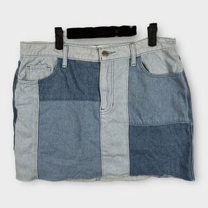 Hollister Patchwork Denim Jean Mini Skirt Size 13 31W Y2K Frayed Hem High Rise
