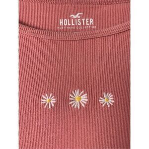 Hollister Pink Lettuce Hem Daisy Embroidered Crop Top