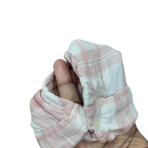 Stay effortlessly cute and comfy in this Hollister Pink Plaid Faux Wrap Top. Featuring a soft woven fabric in a light pink and white plaid pattern, this top offers a relaxed fit with a flattering surplice wrap front design and elastic cuffs for a casual yet feminine vibe. Perfect for pairing with jeans, skirts, or shorts for a laid-back look.