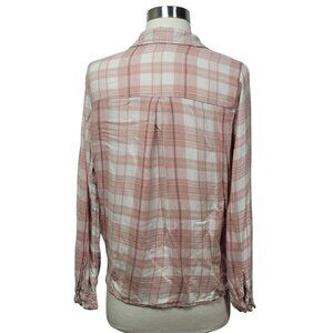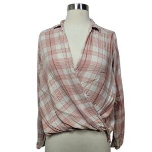 Hollister Pink Plaid Wrap Front Top Size Small Long Sleeve Casual Flannel Blouse