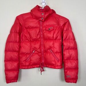 Keywords: Hollister, red jacket, puffer coat, womens jacket, down filled, feather filled, hooded jacket, casual jacket, small size, outerwear, winter coat, padded jacket