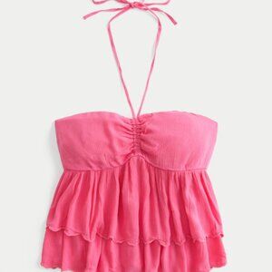 Beautiful Halter Top! Never worn. Super flattering on - vibrant pink color looks good on everyone! Size small. Can either be tied to be a halter or worn strapless!