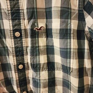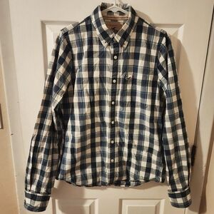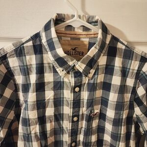 Hollister Plaid 100% Cotton Button Down Dress Shirt Blue White Men's Large L EUC