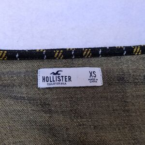 Hollister Plaid Crop Top Juniors XS Cap Sleeve Square Neck Button Black Yellow
