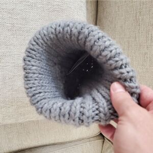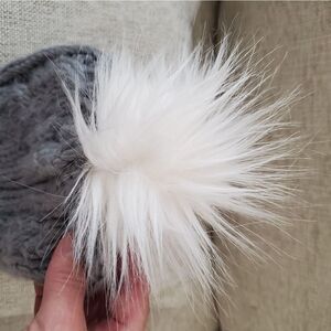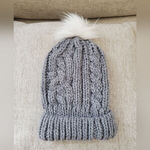 Gently used in great condition. Grey color with white pom pom. One Size fits most Chunky knit 100% acrylic Hand wash Fm28sc