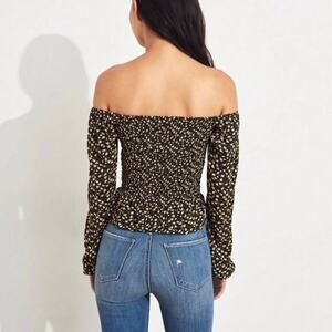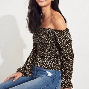 Hollister Prairie Smocked Floral Blouse Off Shoulder Peasant Top