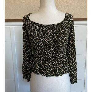 Hollister Prairie Smocked Floral Blouse Off Shoulder Peasant Top M