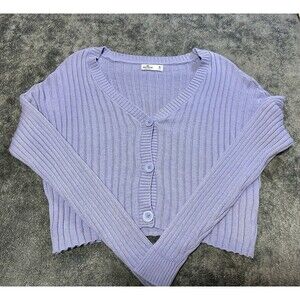 Hollister Purple Ribbed Cropped Cardigan Size M