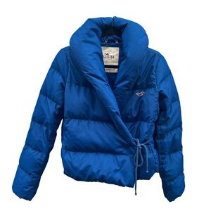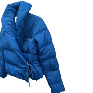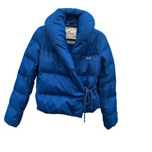 Hollister RARE Cobalt Blue Shawl Collar Cropped Wrap Puffer Jacket Blue Size M