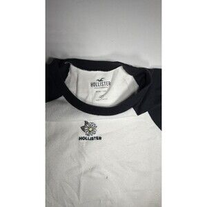 Hollister Raglan Short Sleeve Baby Tee Juniors Large White Black Crew Neck Crop
