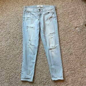 Hollister railroad striped distressed jeans. Cropped ankle length. Slim straight leg fit. 100% cotton