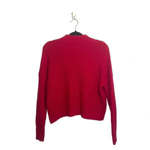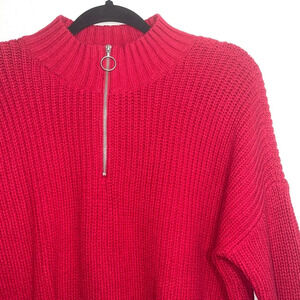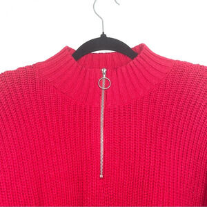 Hollister red knit cropped sweater. In excellent condition! Collared. Quarter zip front closure. Circle zipper detail. Long sleeves. Cropped. Tight knit material. Bright red color. Size medium.