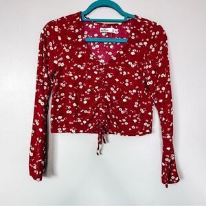 Hollister Red Floral Print Long Sleeve Cropped Top Size XS