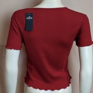 Hollister Red Ribbed Short Sleeve Cropped Lettuce Hem Butterfly Baby Tee Size XS