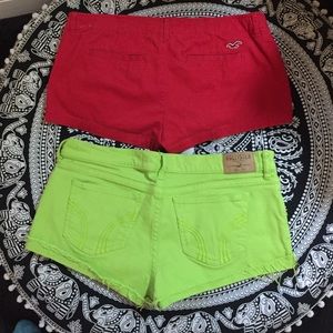 Super comfy and barely worn Hollister short shorts bundle! I have both Red and Lime Green in size 9! They come from a smoke free home! Get both for $17 or just one for $10! Willing to negotiate too! PS: Hollister sometimes runs a little small, I usually wear a size 7.