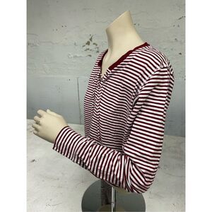 Hollister Red/White Stripe Long Sleeve Shoe Lace Collar Ladies Size Small
