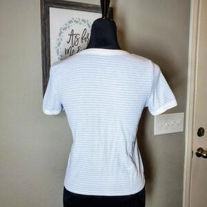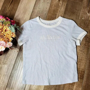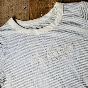 Hollister Ribbed Blue and White Cropped Striped T-Shirt Juniors Size XL