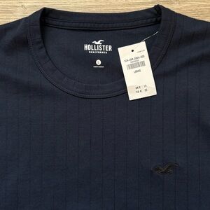 Hollister Ribbed Crew T-Shirt Dark Navy Preppy Normcore Casual Men’s Large NEW