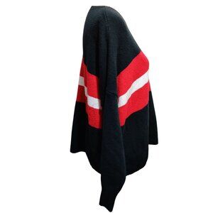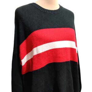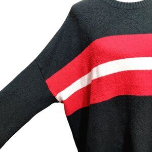 Hollister S black red white block stripe crewneck sweater slouchy pullover knit