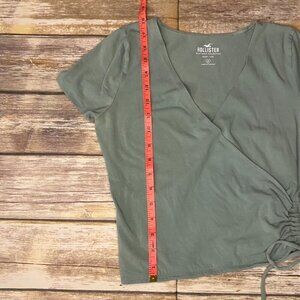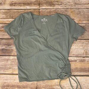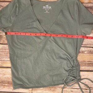 Gently used, in excellent condition. This Hollister crop top in sage green, size medium, is perfect for any occasion. The V-neckline and classic/fitted sleeves add a stylish touch to the pullover closure. Made from a comfortable cotton blend, this top is great for travel, parties, or casual wear. The cropped style and juniors size type make it a trendy addition to any wardrobe. Whether you're pairing it with jeans or shorts, this Hollister top is sure to impress. Smoke-free, pet friendly home.