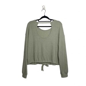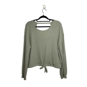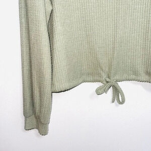 Hollister Sage Green Keyhole Back Crop Tie Waist Waffle Knit Top Medium Women’s