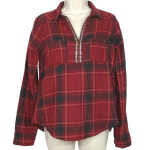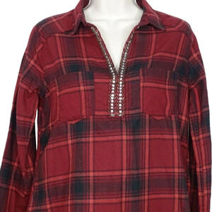 Hollister Sequin Neck Flannel Tunic Top Size S